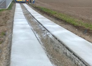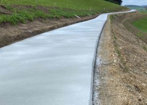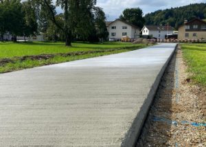 Eine weitere Kernkompetenz von uns sind die vollflächigen Betonstrassen, Betonspuren und Betonplatten. Unsere einzigartige Einbaumaschine wurde speziell für diesen Bereich mit Hilfe eines Maschinenbauunternehmens selbst konstruiert. Mit diesem Gleitschalungsfertiger ist es uns möglich, verschiedene Strassenbreiten anzubieten (Breite von 2.50 m bis 4.50 m). Die Einbaustärke kann auf Wunsch individuell angepasst werden. Für eine Beratung vor Ort oder für weitere Auskünfte stehen wir Ihnen gerne zur Verfügung.