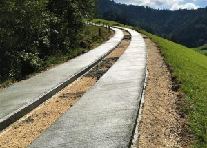 Um dem ökologischen Gleichgewicht möglichst gerecht zu werden, sind unsere Betonspuren in Kombination mit Wanderwegen eine sehr gute Alternative.