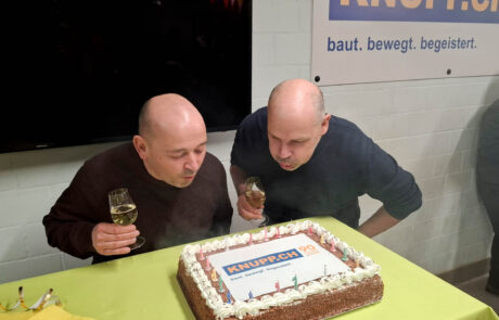 Am Freitag, 27. Februar 2026 haben wir gemeinsam auf den Auftakt unseres Jubiläumsjahr angestossen. Unsere Firma wurde im Jahr 1935 von Anton Knupp gegründet. Im März 2006 übernahmen zwei langjährige Mitarbeiter, Lukas Blum und René Roth, die Firma und gründeten die Knupp Bau AG.